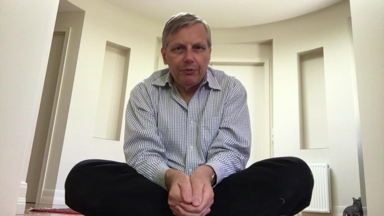 Then lean forward and rest your head on the clasped hands, the knuckles of your two thumbs should be just under your nose, on either side of your philtrum (the vertical groove that runs down from your nose to your upper lip).